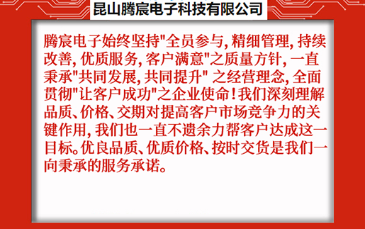 昆山騰宸電子科技有限公司位于中國線路板加工之都昆山千燈,公司專注于電路板研發(fā)設(shè)計(jì)、PCB抄板、元器件采購、SMT貼片加工、組裝測試,為客戶提供一站式電子制造服務(wù)。騰宸電子始終堅(jiān)持"全員參與,精細(xì)管理,持續(xù)改善,優(yōu)質(zhì)服務(wù),客戶滿意"之質(zhì)量方針,一直秉承"共同發(fā)展,共同提升" 之經(jīng)營理念,全面貫徹"讓客戶成功"之企業(yè)使命!我們深刻理解品質(zhì)、價(jià)格、交期對提高客戶市場競爭力的關(guān)鍵作用,我們也一直不遺余力幫客戶達(dá)成這一目標(biāo)。優(yōu)良品質(zhì)、優(yōu)質(zhì)價(jià)格、按時交貨是我們一向秉承的服務(wù)承諾。 ...
